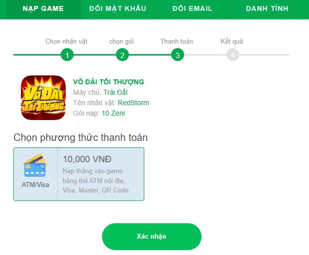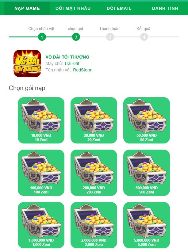 ⚡ Bước 1. Ở Cửa Hàng -> Chọn ” Nạp Zeni ” hoặc vào https://vngates.com/pay sau đó đăng nhập tài khoản ⚡ Bước 2. Chọn Game muốn nạp ⚡ Bước 3. Chọn Server và Nhân Vật ⚡ Bước 4. Chọn Gói Nạp Chọn ” Các hình thức nạp phù hợp ” -> điền các thông tin yêu cầu và làm theo các hướng dẫn tương ứng 🔸 Thẻ tín dụng/Ghi Nợ 🔸Thẻ ATM/Tài khoản ngân hàng 🔸 Thanh toán mã QR với Ứng dụng di động