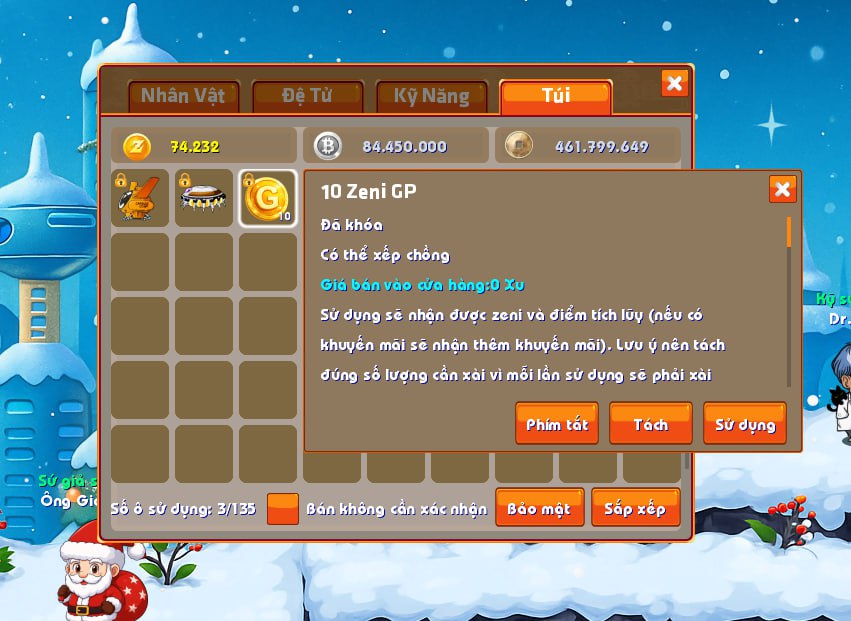 ⚡ Bước 1. Ở Cửa Hàng -> Chọn ” Nhận Zeni ” ⚡ Bước 2. Sau đó sẽ hiện thông báo nạp zeni như hình ⚡ Bước 3. Hoàn tất quá trình + Nếu chọn “ Đồng Ý ” thì hệ thống sẽ nạp toàn bộ GP trong Ví thành số ” Zeni GP ” tương ứng + Nếu chọn “ Hủy ” thì sẽ ngừng toàn bộ quá trình nạp ⚡ Bước 4. Đổi “Zeni GP ” thành ” Zeni ” Khi nào muốn Nạp Zeni -> tách số lượng tương ứng từ ” Zeni GP ” thành ” Zeni” -> sẽ nhận được Zeni và các phúc lợi tương ứng