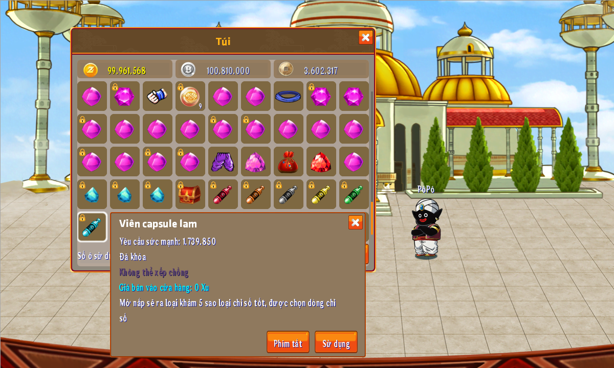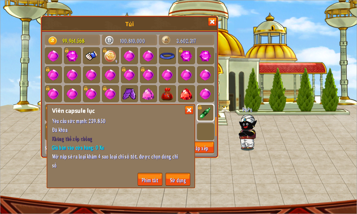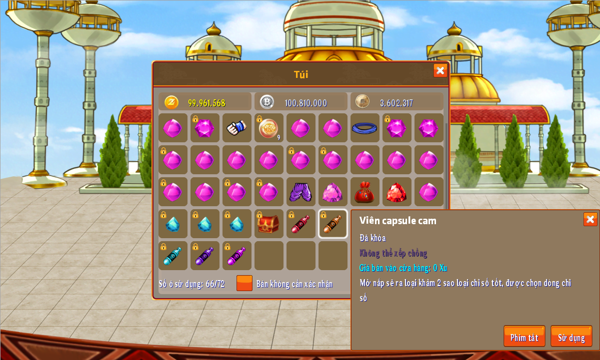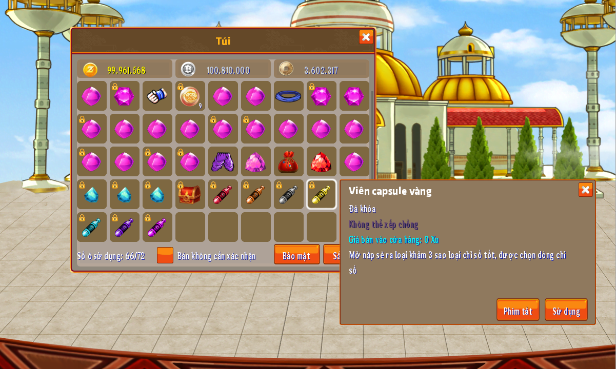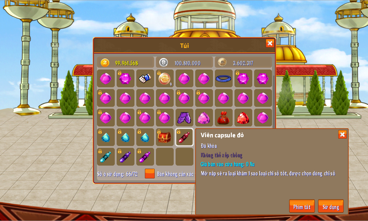 Sử dụng capsule để đổi lấy ngọc khảm ( chỉ số ngẫu nhiên tự chọn).