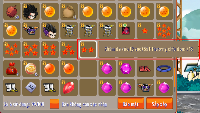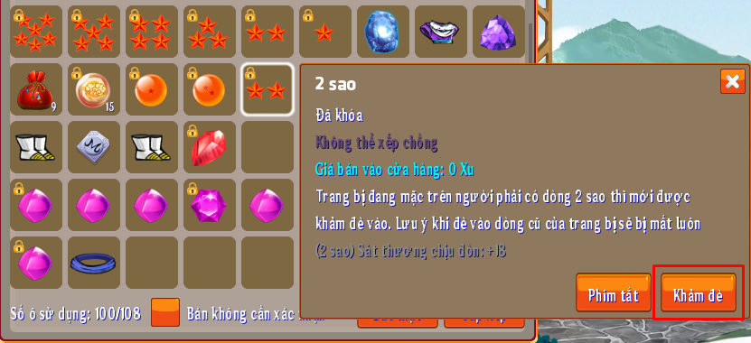 * Lưu ý: chỉ được khảm đè, không được khảm thêm, ví dụ trang bị có dòng 7 sao, thì mới được khảm 7 sao mới đè vào trang bị